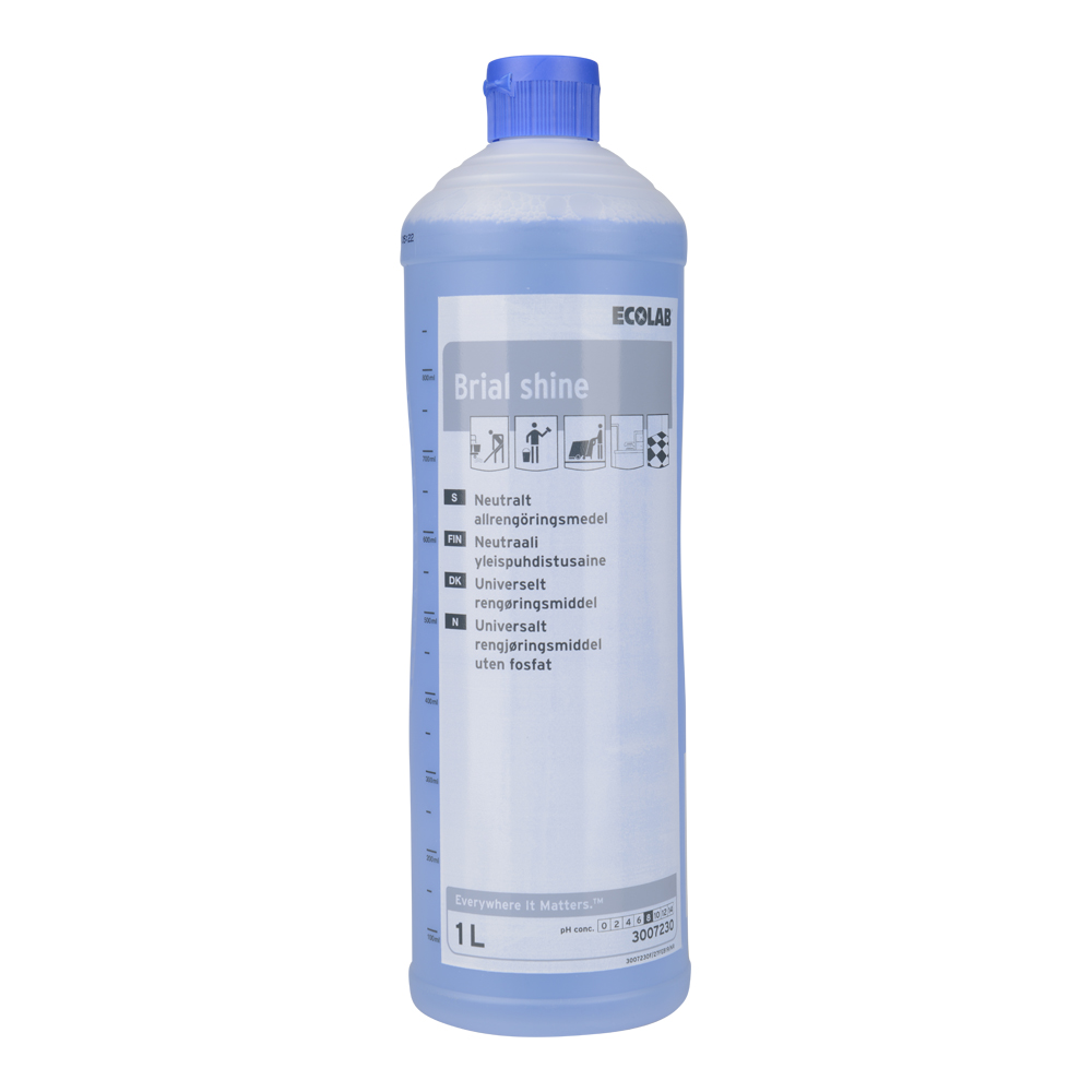 Brial Shine er et universalrengøringsmiddel til rengøring af overflader som glas, marmor, plastik og melamin. Produktet tørrer stribefrit op og efterlader lokalet med en behagelig og vedvarende duft. Produktet er både pH-neutral og hudvenlig og miljømærket efter EU's mærkningsordning Blomsten. Et rengøringsmiddel i absolut topkvalitet.