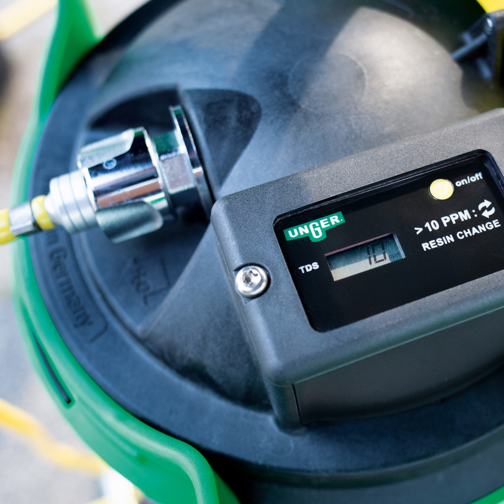 - Ud af anlægget kommer helt afrenset/afmineraliseret vand, som det professionelle vinduespudsere anvender