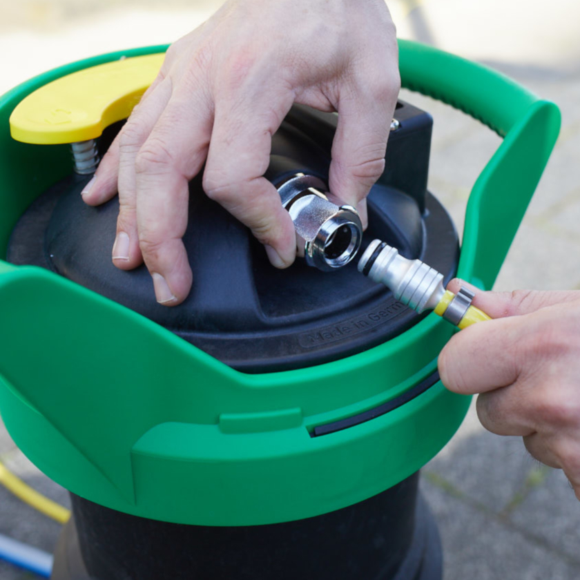 Det eneste du skal bruge for at komme i gang, er en vandhane og en helt almindelig haveslange med ½” lynkobling.