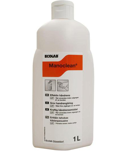 Manoclean Håndrens anbefales til dybderensning af hænder, men uden at udtørre huden. Produktet er meget udbredt i levnedsmiddelindustrien, men også på autoværksteder da den også er effektiv til at opløse sort olie fra hænderne.