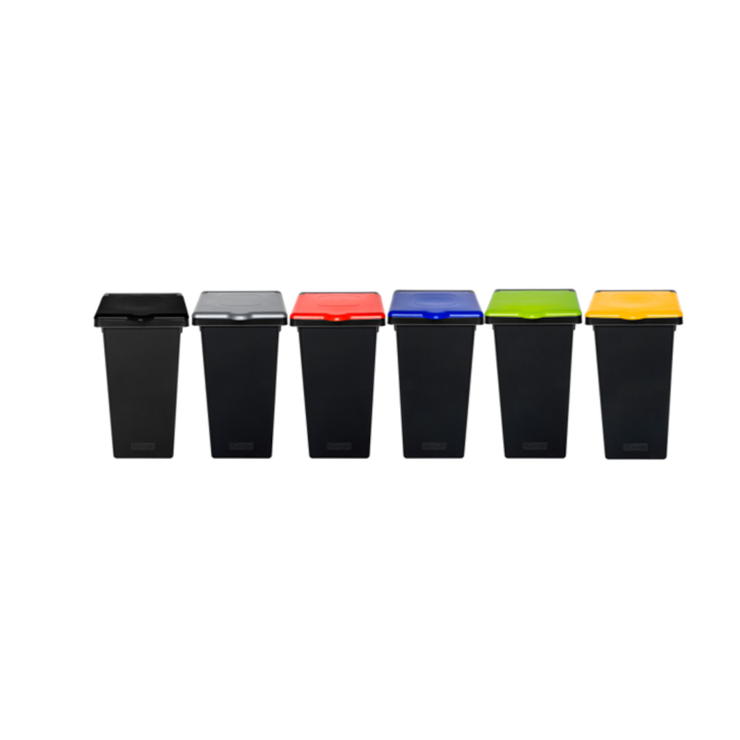 - Fås med farvede låg – gør det nemt at sortere affald efter type (papir, plast, metal, restaffald osv.)