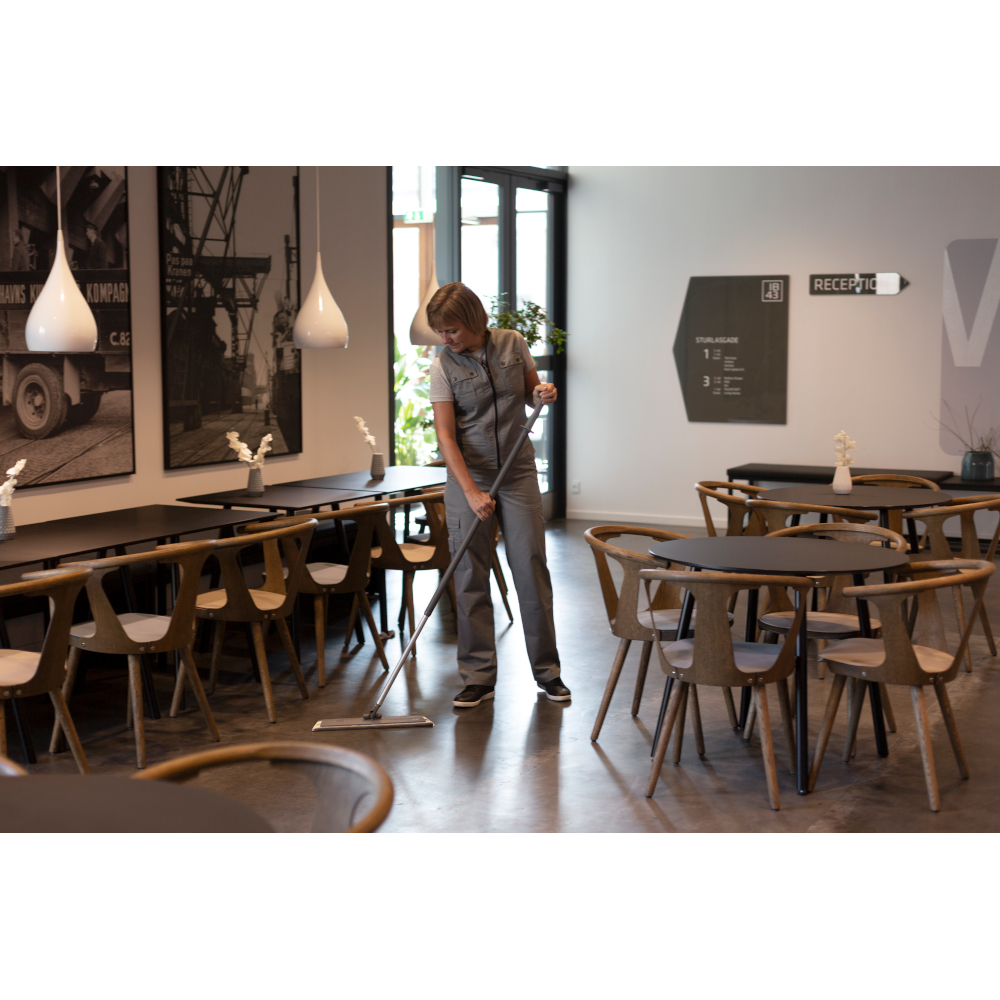 Fremføren anvendes med skaft og moppe til rengøring af mindre gulve eller kan låses i stilling og anvendes til rengøring af større regulære overflader på fx inventar, vægge, dører eller borde.