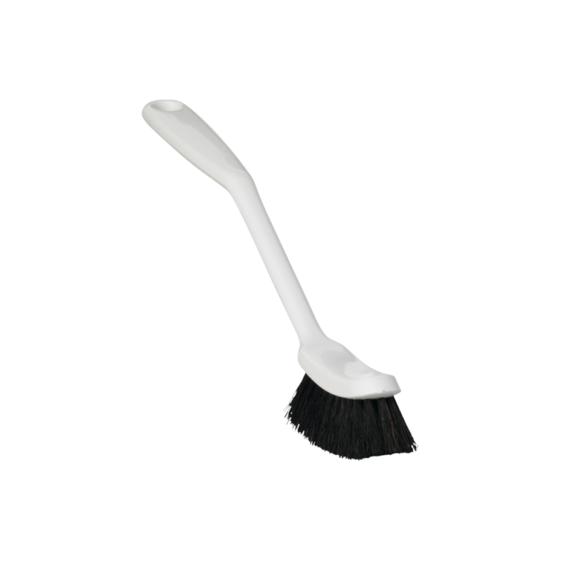 Opvaskebørste, model Vikan 4280. Børsten har ekstra smalt børstehoved, som gør den velegnet til rengøring svært tilgængelige steder, fx i en termokande.