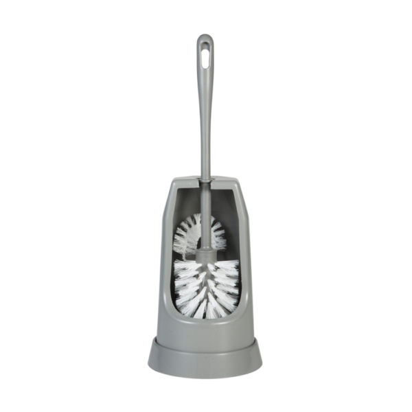 Toiletbørste monteret med ekstra sidebørste til rengøring under selve skyllekanten. Meget universel toiletbørste, da den til tilgå alle steder i kummen.