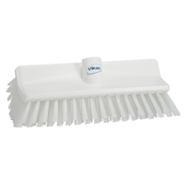 High-Low børste, 260 mm, Hvid. Ergonomisk høj-lav børste. Velegnet til rengøring under borde og maskiner i fødevareindustrien. Kan bruges til farvestyring, så krydskontaminering undgås.