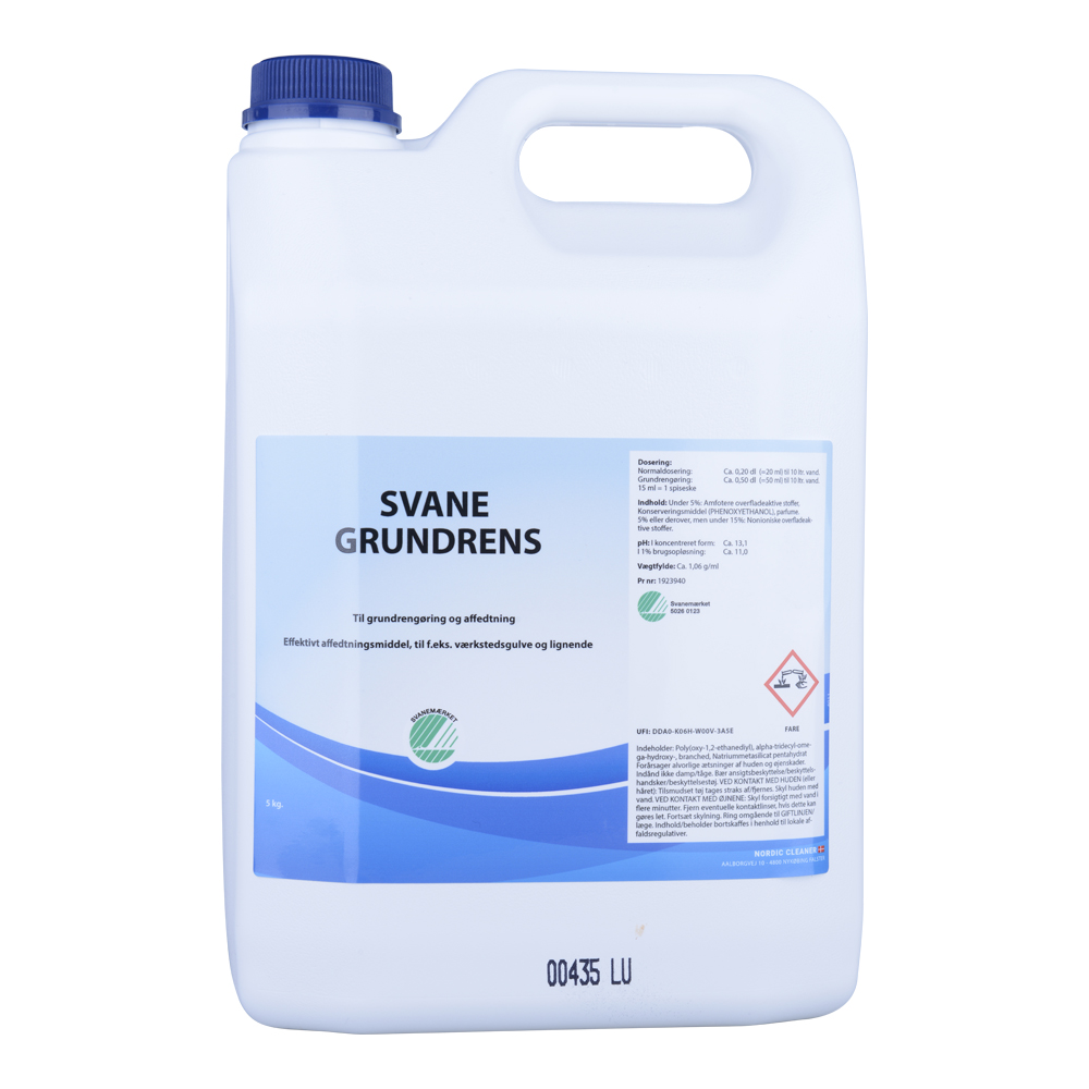 Svane Grundrens anbefales til periodevis fjernelse af kraftig besmudsning af olie og fedt. Produktet er lavtskummende og kan anvendes både manuelt og maskinelt. Produktet anbefales ikke på overflader af højglans og bør heller ikke anvendes på alkalifølsomme overflader.
